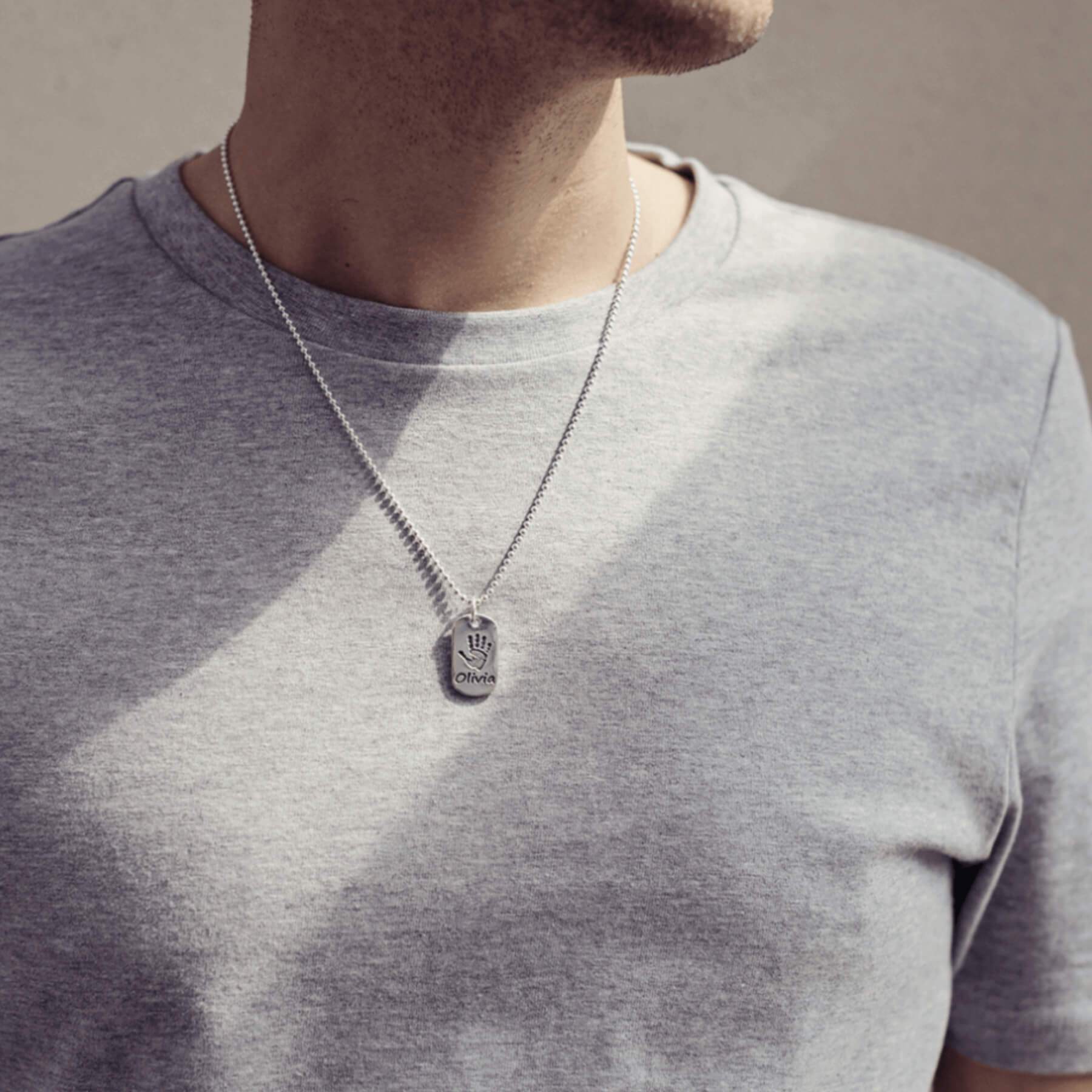 Handprint Or Footprint Dog Tag Necklace, One Print And One Name