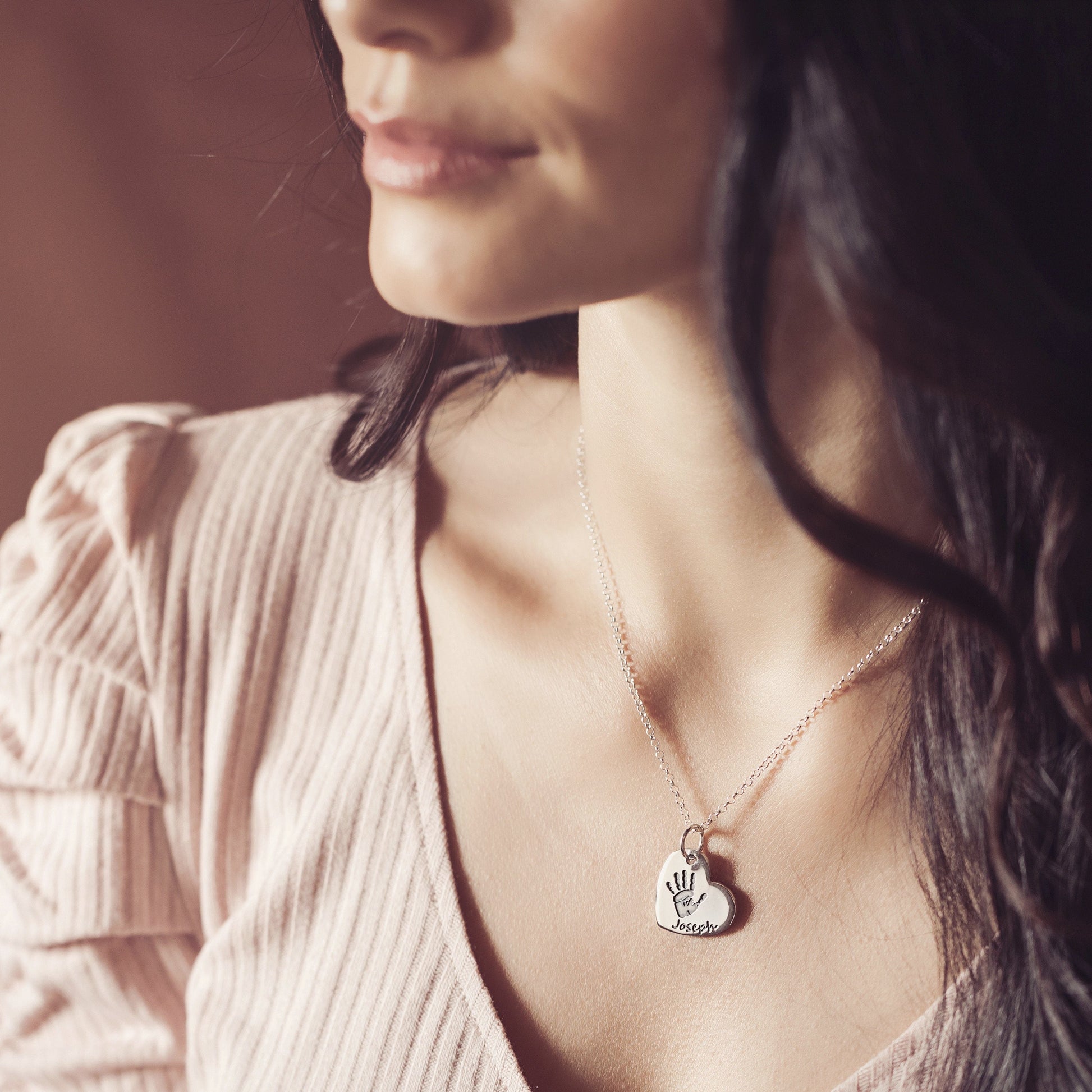 Handprint Or Footprint Large Heart Necklace, One Print And One Name